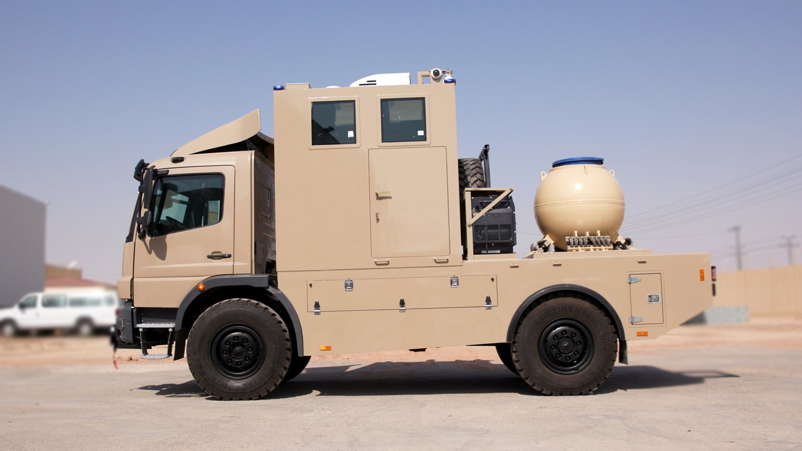 EIC can build armored EOD truck (s) based on various truck platforms depending on the preference of the end user and potentially minimize the logistical footprint by sharing spare parts with other vehicles used in the fleet. Both the cabin and rear compartment can be armored to protect EOD personnel and innocent civilians from small arms fire and other explosive threats such as grenades and RPGs.